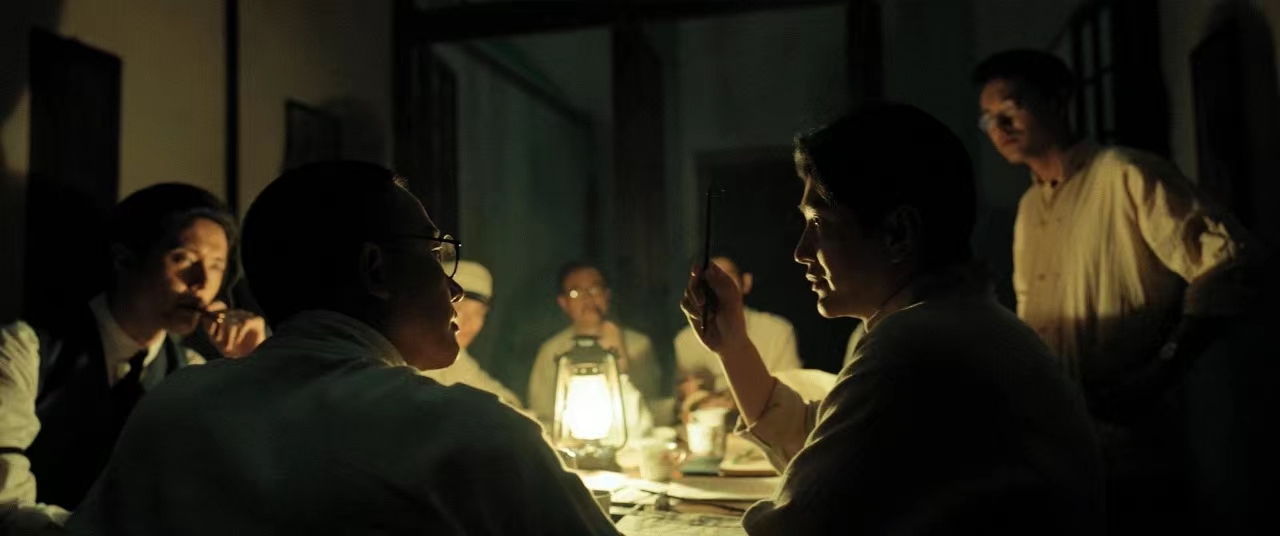 去年建党百年献礼电影《1921》,体现的是书生意气,挥斥方遒,一群有理想、有信仰的知识分子建立了一个先进的政党。电影尤其值得注意的是两个空间,一个是街头,另一个是室内。