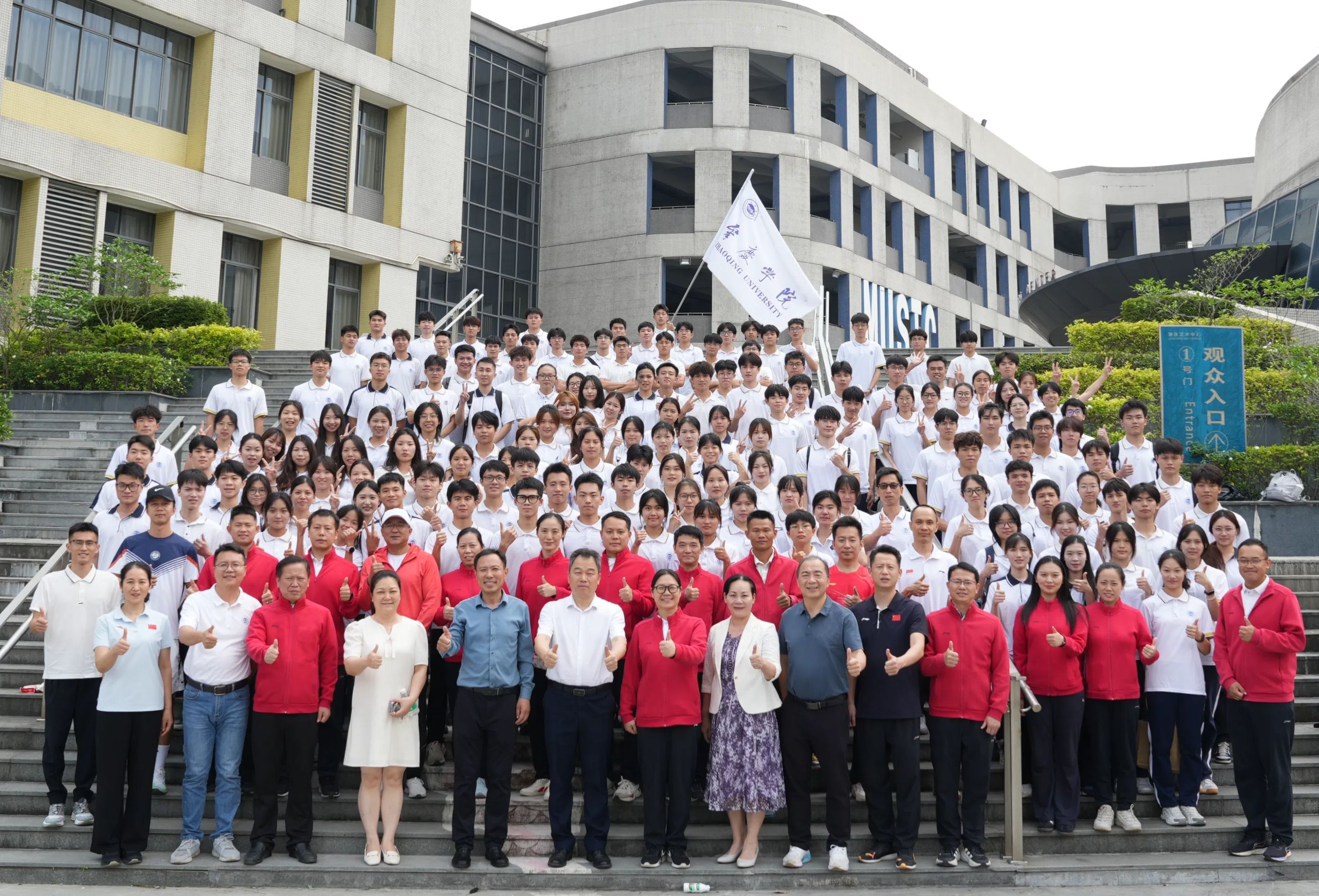 校定向运动队教练程悦明老师和校男子篮球队队长李家声同学分别作为教练员代表和运动员代表发言,表示将以严谨态度对待每一次训练,以坚定信念应对每一场比赛,尊重规则,尊重对手,用竭力奔跑兑现青春誓言,用拼搏汗水书写无悔篇章,用赛场上的表现为肇庆学院增光添彩!