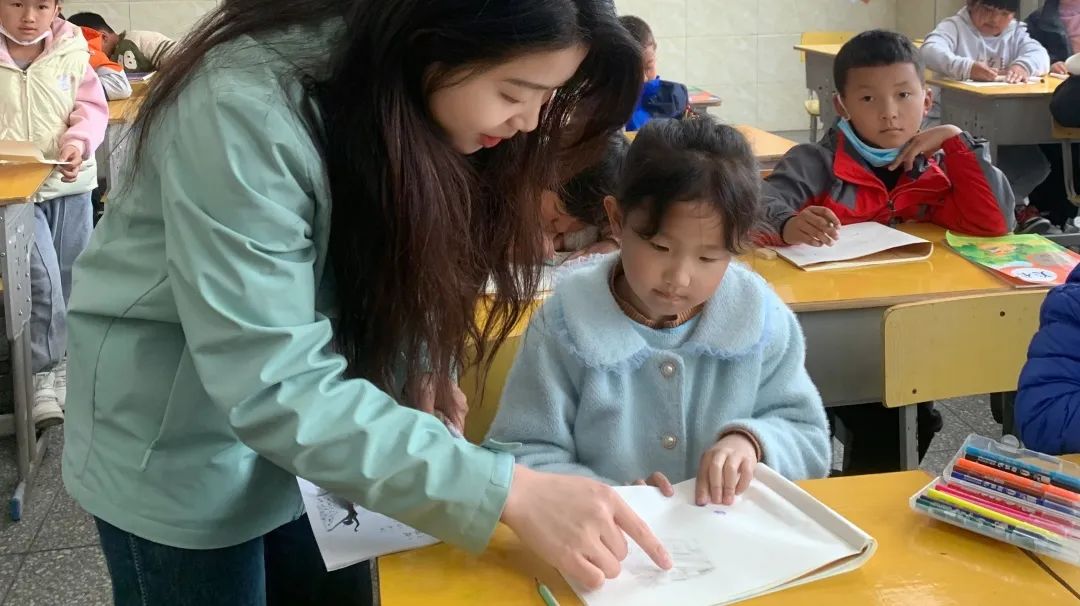 队员劳宇舒在给墨脱县完全小学的学生上美术课