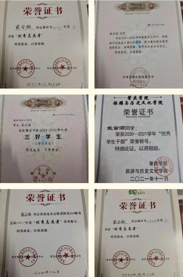 最后,戴宙灏同学讲述了他对志愿精神的定义以及对此次获奖的感想:“从小受家风的影响以及家里人的教导,我懂得了何为‘乐于助人’。我从前是在别人的帮助下成长起来的,所以长大后也想尽自己所能去帮助他人。在这样环境的耳濡目染下,我也有了独属于自己的对志愿精神的理解:尽自己所能地去帮助他人,也许我们不一定有足够大的能力,但能出一份力就是一份力。哪怕很微小的力量,只要我们行动,就能改变很多事情;哪怕只有一点星火,只要我们行动,就能燎原。做志愿的同时,也让我的内心更加温柔、强大。我的身边多了很多新朋友,自己与人沟通的能力也有了提高。我很荣幸能获得肇庆市‘五星志愿者’称号,这不仅对我有着一定的纪念意义,也对我起到了巨大的激励作用。”