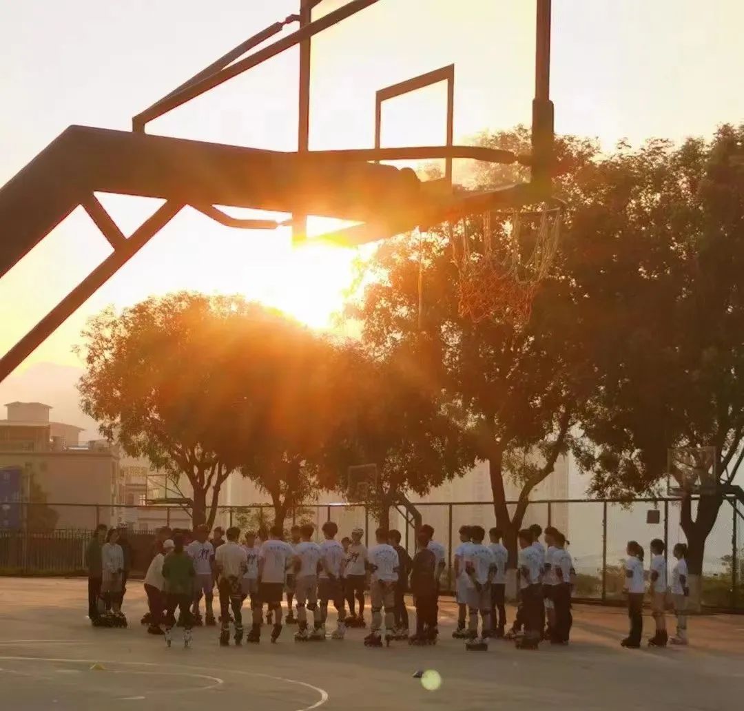 太阳初升,此时的砚园静悄悄,而博学书院篮球场上已站满了一群人,他们熟练地穿上轮滑装备、有序地分好训练小队,在篮球场上肆意“起舞”,一切看似酷炫轻松的轮滑动作,却是轮滑人“朝六晚十”训练的结果。