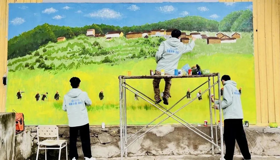 服务队接到邀请后,在背崩乡支教点的陈炜权、罗宇翔以及在德兴乡支教点的李梓豪就放下行李,直接入住了戍边营,他们开始与戍边营的官兵们,对绘制思路进行深入的探讨。待制定出一套完整的绘画方案后,他们立即投身到绘制工作中。