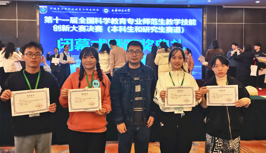 本网讯 12月2日,由中国青少年科技教育工作者协会主办,西华师范大学和中国青少年科技教育工作者协会科学教师教育专业委员会共同承办的第十一届全国科学教育专业师范生教学技能创新大赛落下帷幕。来自我校教育科学学院的4名选手在决赛中敢打敢拼,最终荣获3项一等奖,为学校争得了荣誉。