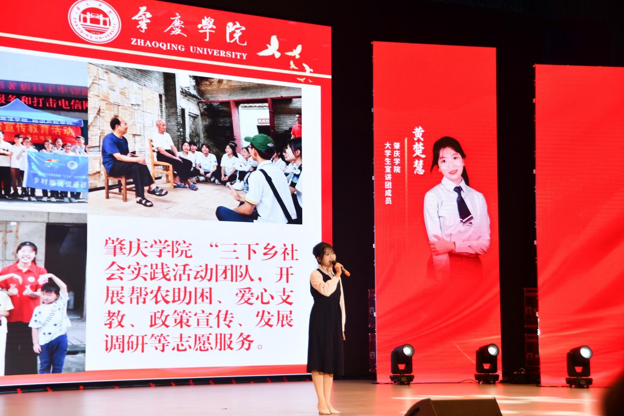 今年5月,市委宣传部等五个部门共同启动了2023年肇庆高校宣讲之星评选活动,包括我校17名大学生宣讲员脱颖而出,进行本次活动的主题宣讲。累计17个微宣讲视频在“肇庆发布”官微的观看人数高达86345人次,投票总数达21123票。