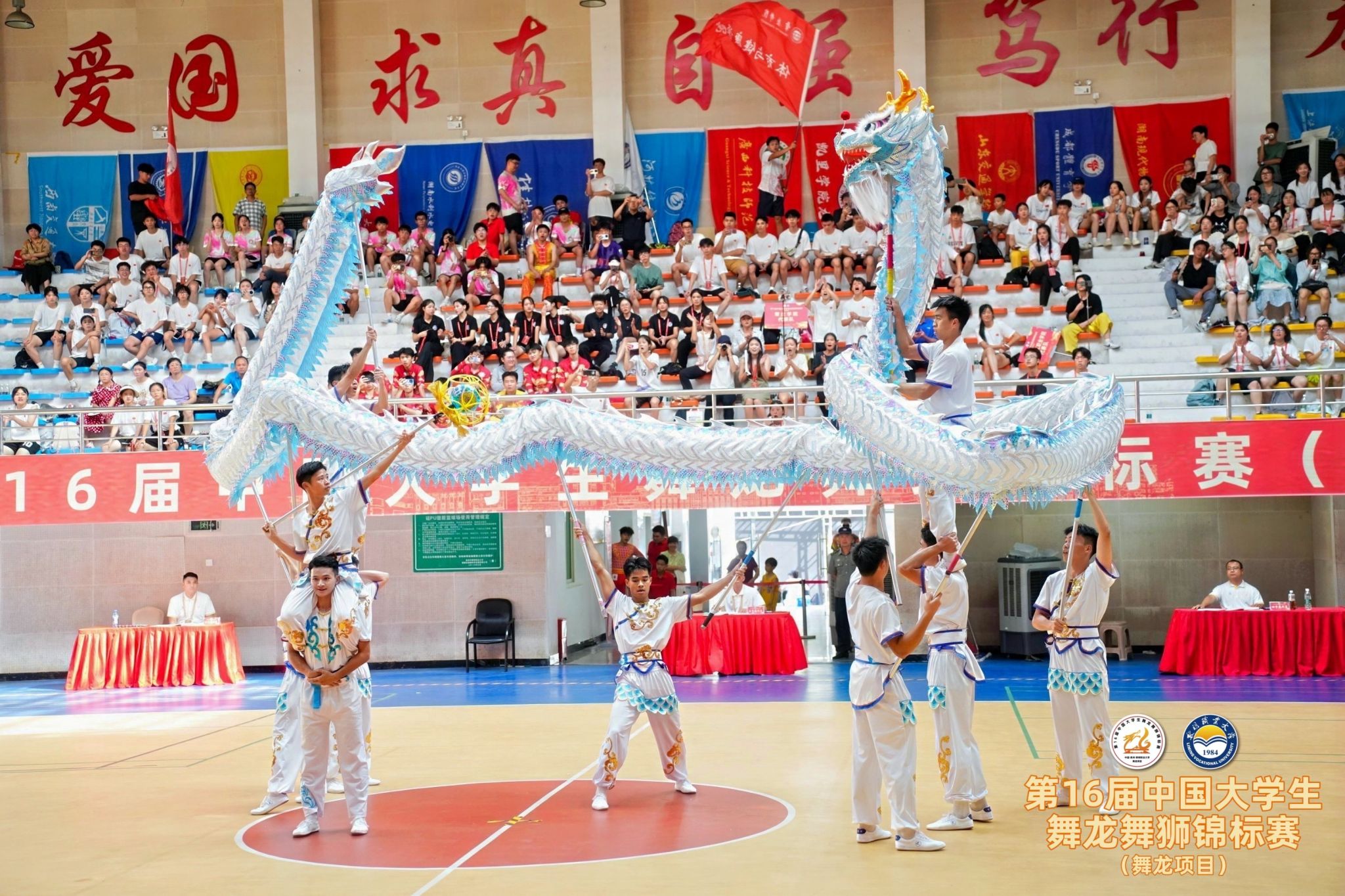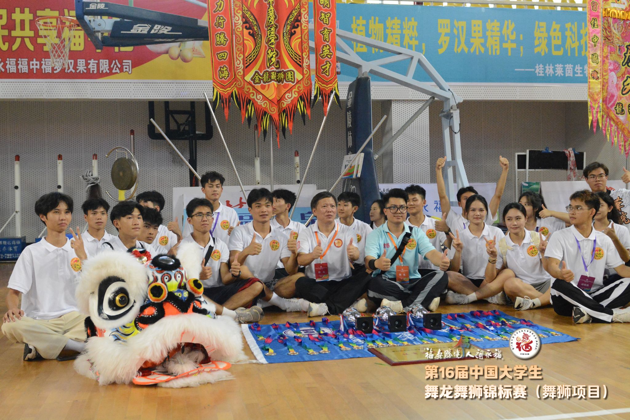 本次比赛由中国学生体育联合会主办、中国学生体育联合会舞龙舞狮分会执行,其中舞龙项目由福建黎明职业技术大学承办、舞狮项目由广西壮族自治区桂林市永福县人民政府承办。适逢龙年,盛世中华,龙腾狮跃,大赛汇聚了来自全国包括浙江大学,湖南师范大学,广西师范大学,河北体育学院等60多所高校,逾1800多名领队、教练员、运动员参加,参赛队伍和人数是历年之最。南北荟萃,高手云集,我校金龙醒狮团积极进取,不畏强手,参加了其中有专业体育院校高水平队员参赛,竞争最为激烈的丙组竞赛项目,最终不负众望,舞狮项目取得3块银牌(丙组男子传统南狮第二名、丙组女子传统南狮第二名、甲组男子传统南狮第二名)以及体育道德风尚奖;舞龙项目取得女子自选套路第四名,男子规定套路第五名和男子自选套路第五名的成绩,同时获得女子团队总分第二名,男子团体总分第六名和男女团体总分第五名的成绩,展显了我校作为传统舞龙舞狮强队的实力和风范。