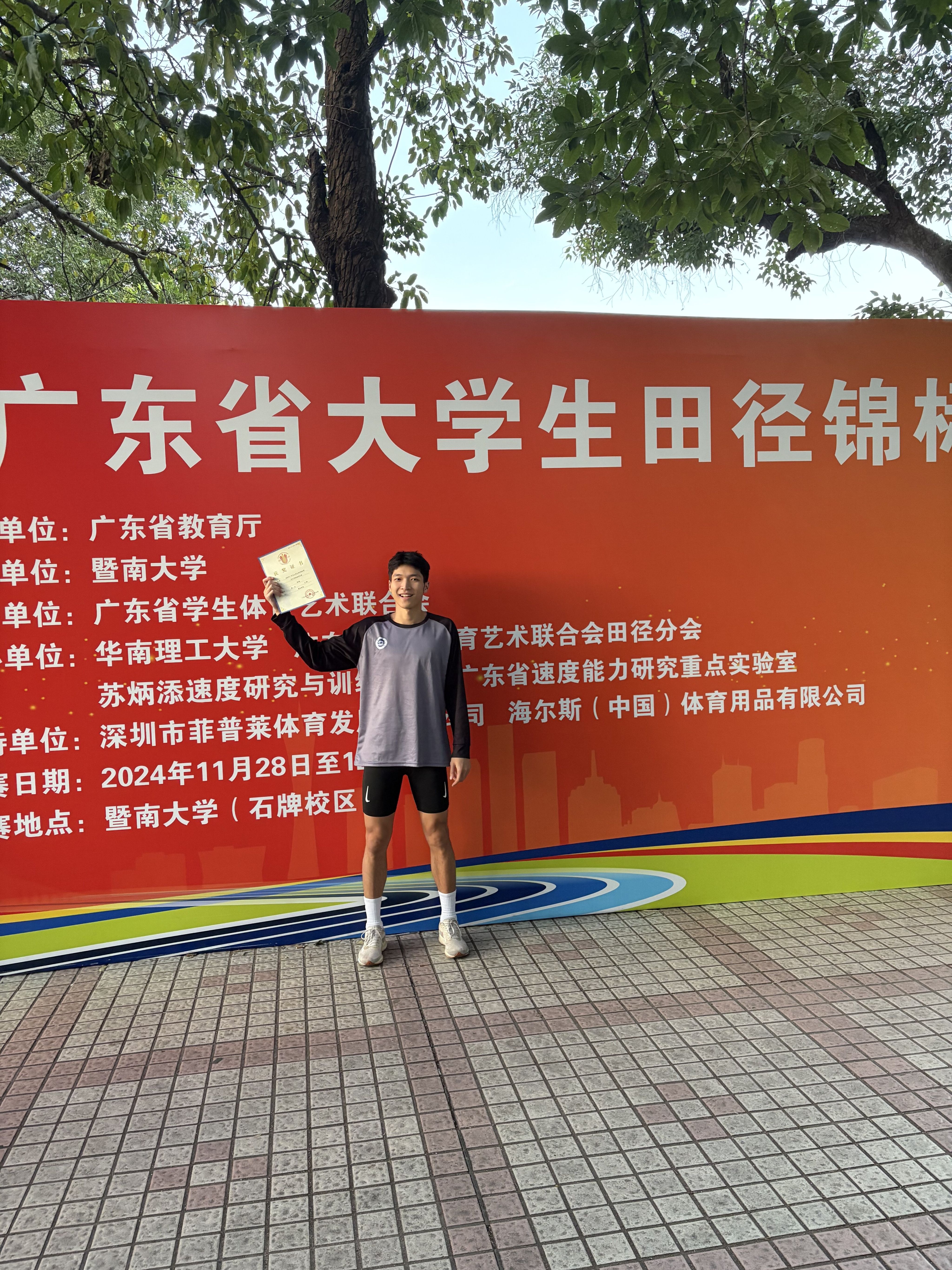 本网讯 11月30日,由广东省学生体育艺术联合会举办的2024年广东省大学生田径锦标赛在广州举行。经管学院林斌与13所参与男子甲B组跳高的高校优秀运动员一较高下。