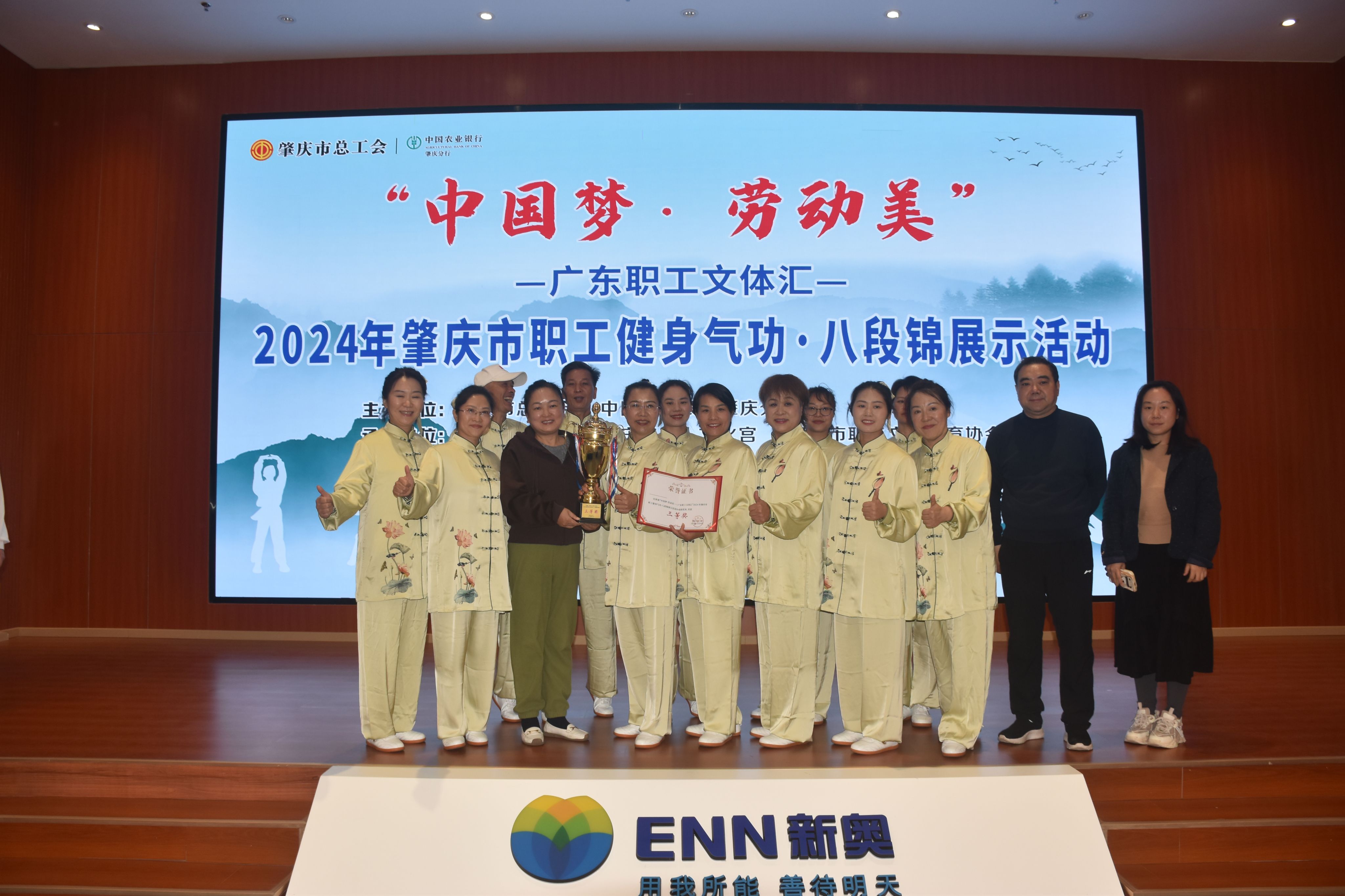 本网讯 12月30日下午,“中国梦·劳动美-广东职工文体汇”肇庆市职工健身气功·八段锦展示活动在肇庆新奥燃气公司举行。我校组织代表队参赛,并获得三等奖。本次活动由肇庆市总工会主办,旨在全面贯彻落实党的二十届三中全会精神,积极推广和普及传统健身功法八段锦,引导广大职工群众参与全民健身活动,增强职工身体素质。校工会积极响应号召,举办教职工八段锦培训班,并选拔12名优秀学员组队参与比赛,展现了我校对教职工身心健康的高度重视。