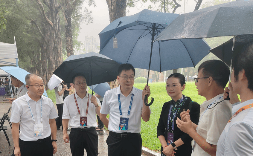 大赛项目对接洽谈活动期间,广东省委教育工委委员,省教育厅党组成员、副厅长程大欣,中山大学党委副书记张琪在省教育厅就业创业处负责人等陪同下驻足我校创新创业成果展位,与创新创业学院负责人,项目指导教师,学生团队深入交流。程大欣寄语肇庆学院师生继续发挥自身优势,培育出更多优秀创新创业成果,为社会输送更多创新型人才,推动创新创业事业蓬勃发展。