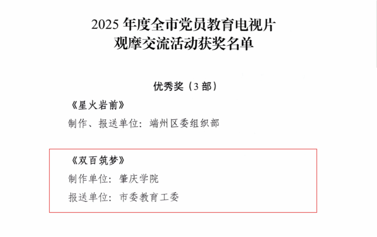 本网讯 近日,2025年度全市党员教育电视片观摩交流活动获奖名单公布。其中,我校作品《双百筑梦》获优秀奖。