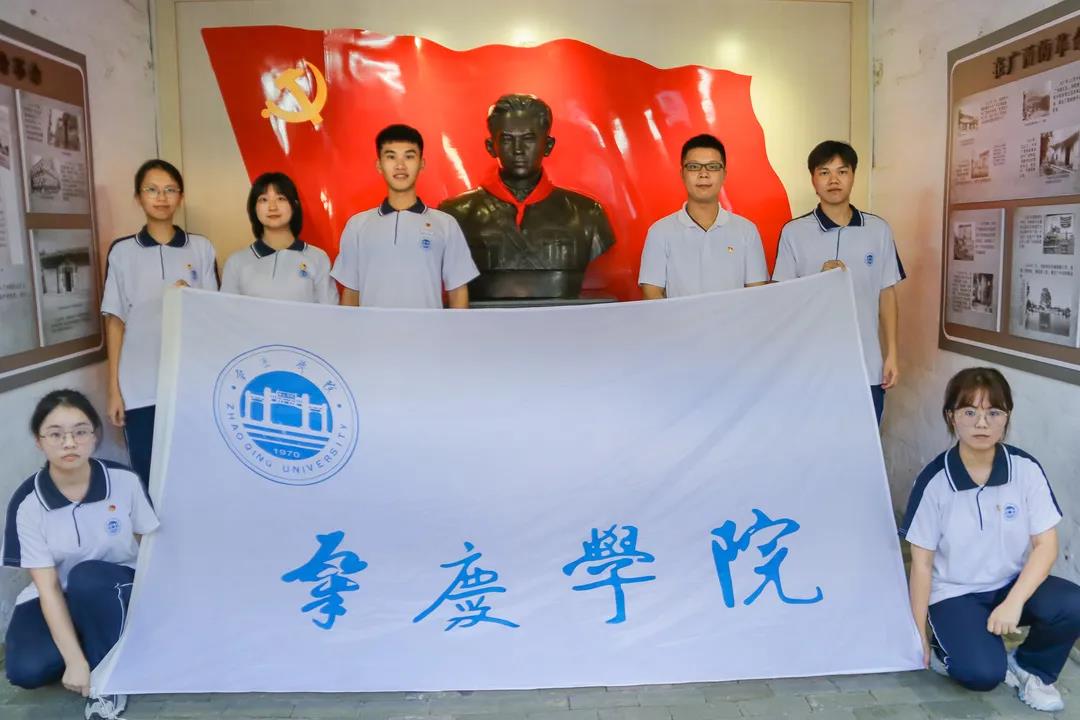 永富村头的稻苗郁郁葱葱,在朗日晴空下随着微风摆动;野花上休憩的蜻蜓忽地飞起,掠过肇庆学院新闻中心党史学习实践团的队伍,他们的脚步扬起乡间小道上的尘土,往一处幽静的老屋走去。